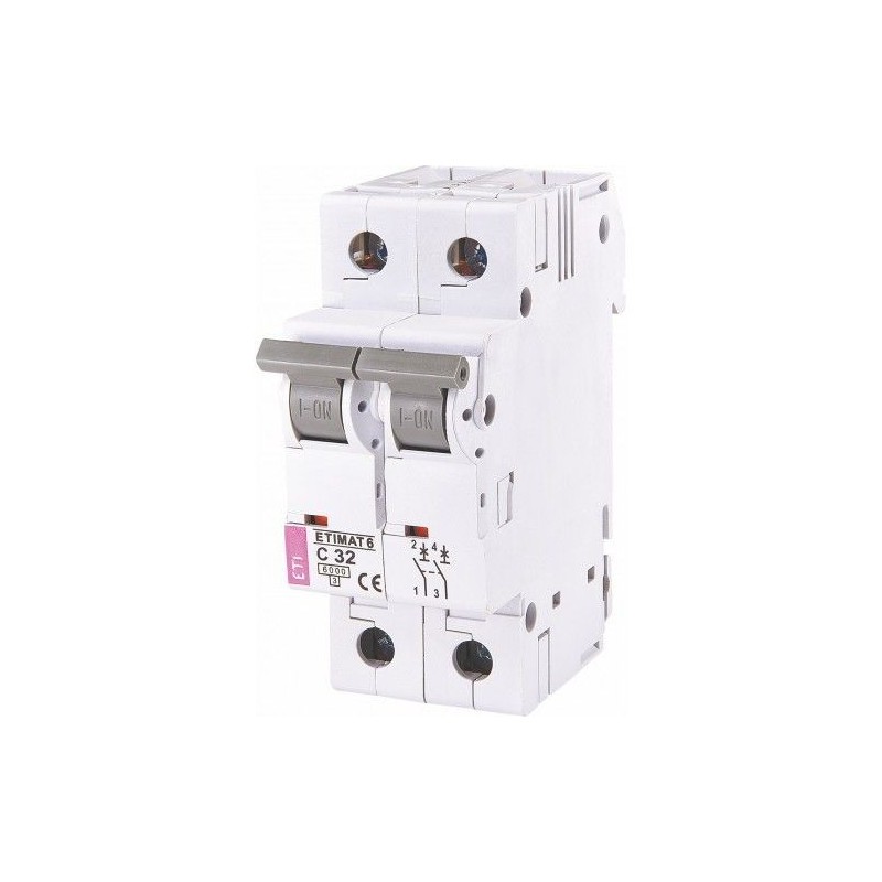 Автоматические выключатели ETIMAT 6, 2 полюса, тип C, 32А (6 kA), ETI предназначены для защиты сетей электроснабжения и приборов от тепловой перегрузки и от короткого замыкания. Модульные. Устанавливаются в распределительный щит. Возможна установка дополнительного оборудования: дополнительный контакт, сигнальный контакт, независимый расцепитель, расцепитель минимального напряжения.