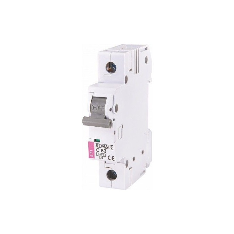Автоматичний вимикач 63А, 1 полюс, тип C, 6 kA, ETIMAT 6 призначений для захисту мереж електропостачання і приладів від теплового перевантаження і від короткого замикання.